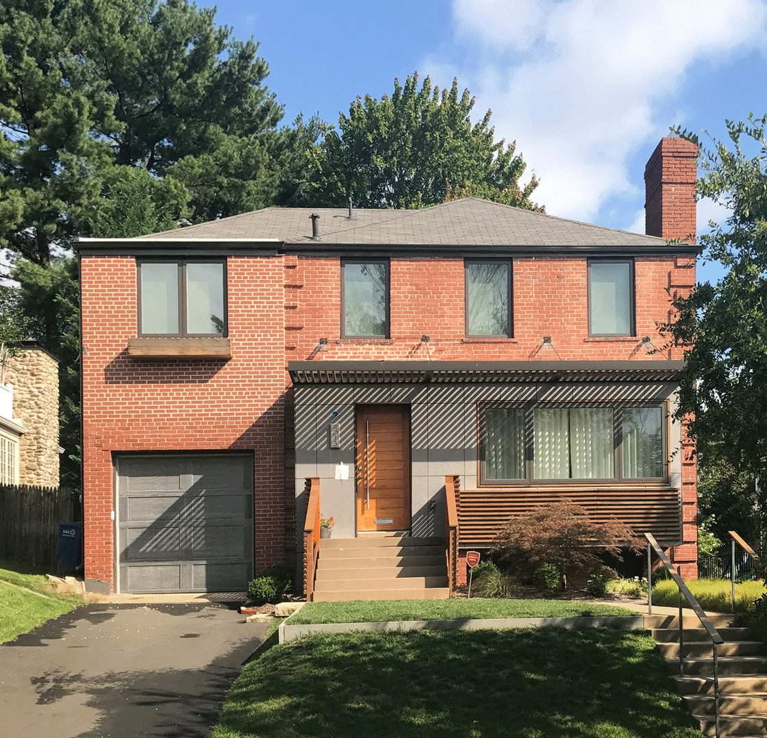 In this extensive and calculated renovation to a 1940s house in Northwest Washington DC, the quality of the various spaces was greatly improved through the enlarged of openings between key spaces, a significant enlarged of the kitchen and living room through the introduction of localized additions at the front and rear of the house, and the replacement of an rear screened porch with a larger family room addition. On top of the new family is a new master bedroom with access to a private roof deck on top of the kitchen addition roof.